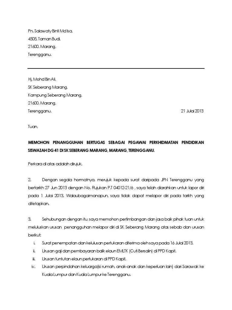 Surat Tangguh Lapor Diri : Surat Penangguhan Lapor Diri Pdfcoffee Com