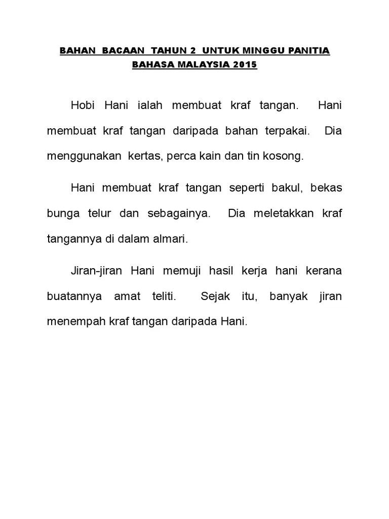 Bahan Bacaan Tahun 1 Bahasa Melayu - Modul Bacaan Bm Tahun 1 Worksheet
